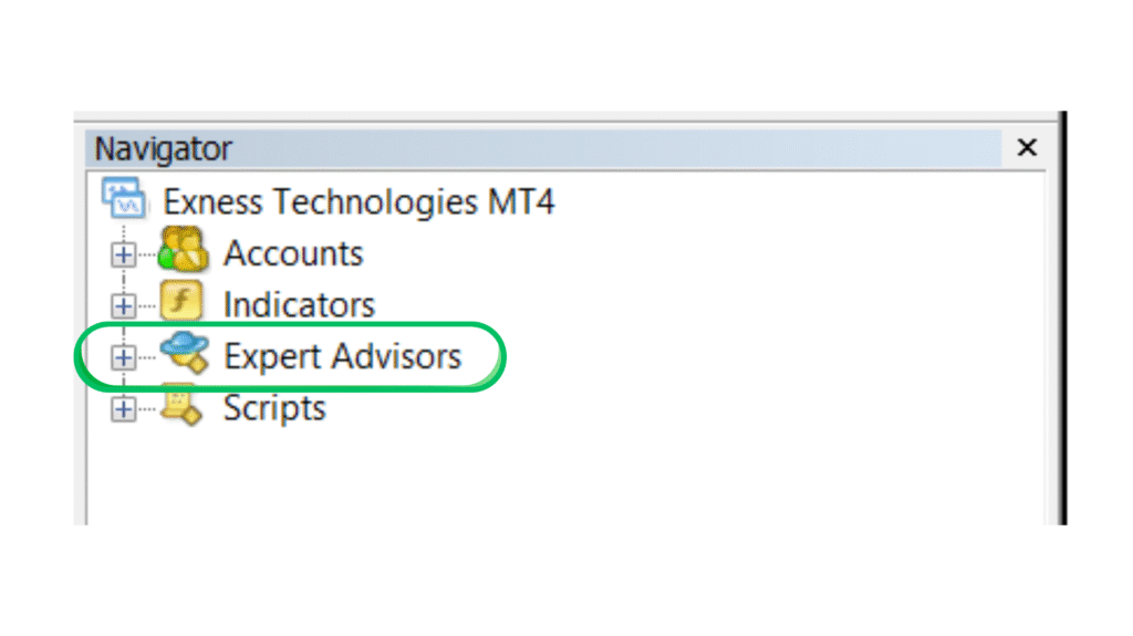 4. Find the “Expert Advisors” section (you may need to click the “+” sign to expand it).