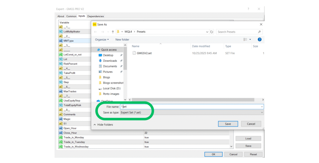 💾 How to Save a Set (.set) File in MT4