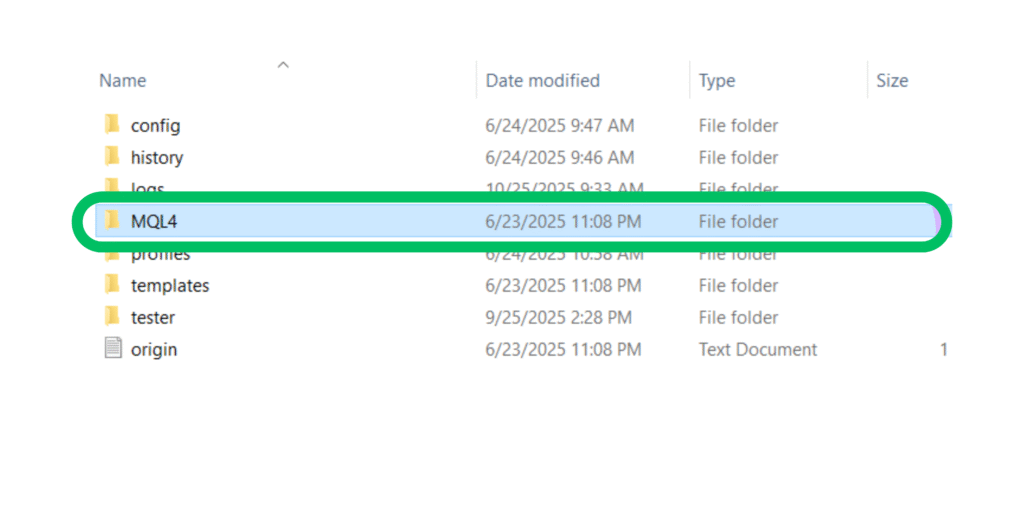 🗂️ Step 2: Go to the “MQL4” Folder