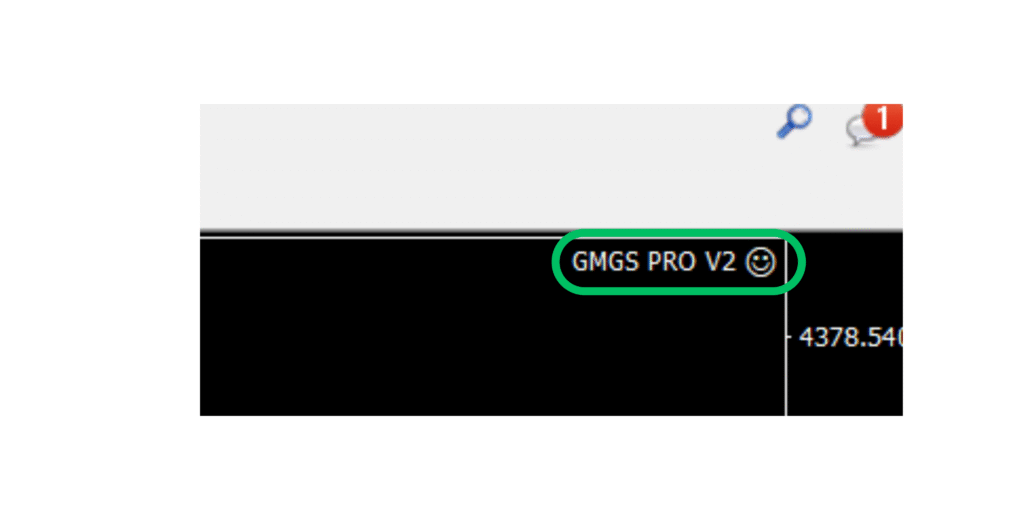 After you’ve enabled AutoTrading, look at the top-right corner of your chart — right beside your Expert Advisors name (for example, GMGS PRO V2).